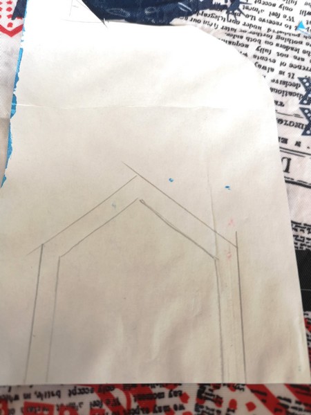 - la poche : j’ai découpé un gabarit un peu plus grand pour faire des ailettes sur le côté afin de pouvoir la coller de manière à ce qu’elle forme une poche dans laquelle on pourra glisser les outils.