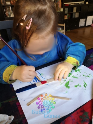 J’ai collé des morceaux de scotch sur le grand batonnet pour délimiter les couleurs.