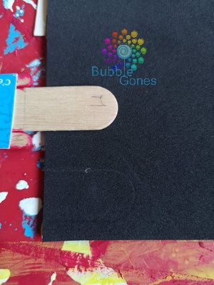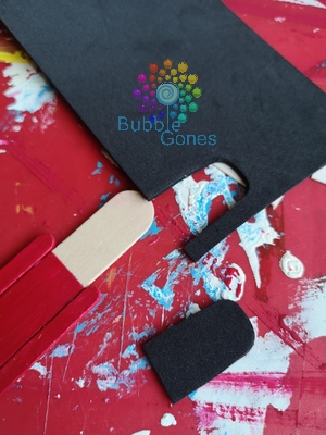 J’ai reproduit le contour du grand batonnet sur la mousse noir puis j’ai découpé le contour. Je l’ai collé sur le batonnet pour faire le casque.