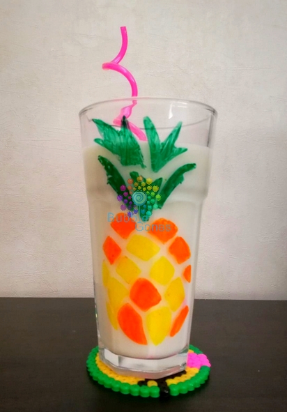Cette année, on est fan de smoothie et d’eaux aromatisées maison. Du coup j’ai proposé aux filles de customiser un verre avec un sous-verre et une belle paille.