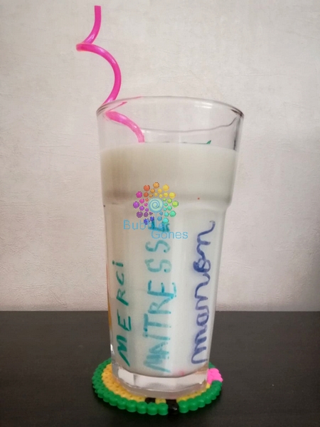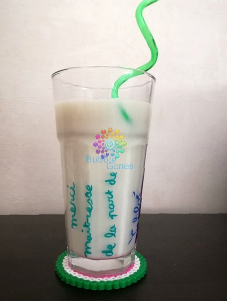 Et voilà le cadeau de fin d’année des maîtresses, pour la photo les filles ont voulu se faire un lait frais avec les verres à cocktail, et ça rends super bien !!