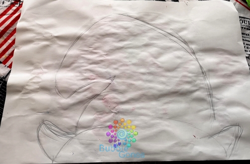 J’ai déposé un filet de colle et elle a déposé les rubans dessus pour faire les cheveux.