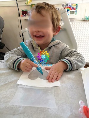 Hugo a choisi le bleu et le rouge pour colorer ce coeur. Il s’est bien appliqué à le colorer en entier ^_^