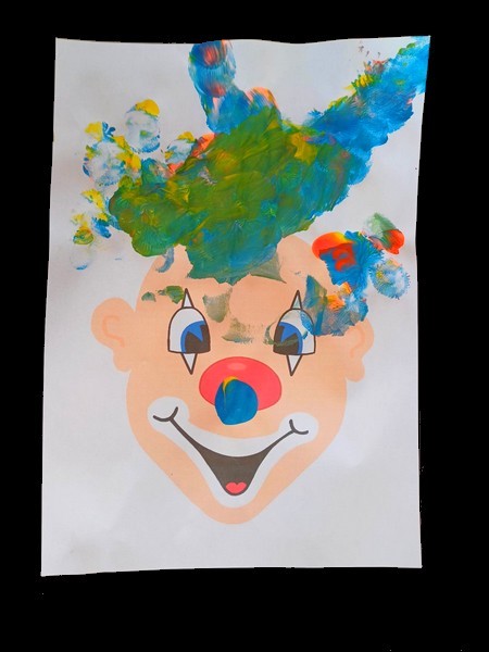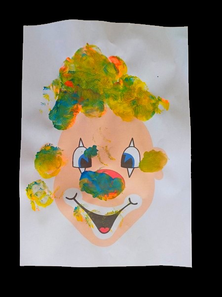 - tête de clown : imprimé sur du papier blanc