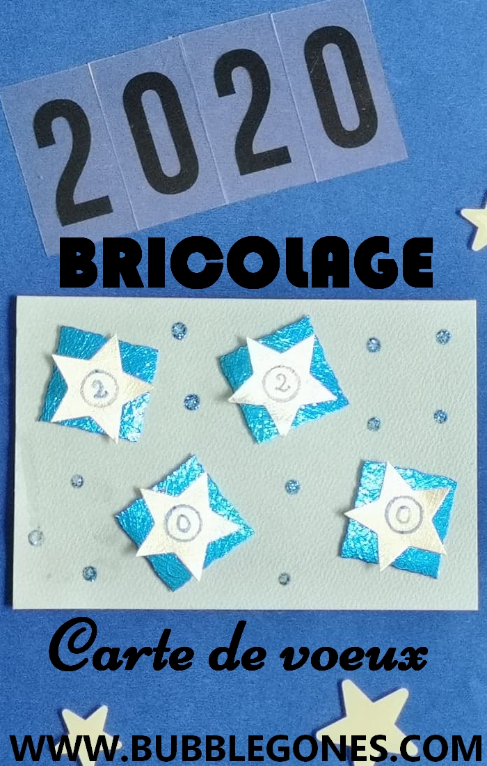 Cette carte est simplissime à réaliser : c’est simplement du collage. J’ai d’abord tamponné les étoiles avec les chiffres 0 et 2.