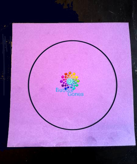 Je l’ai collé sur le fond violet à la base du cercle évidé, puis j’ai collé les côtés et le fond avec de la colle et du scotch coloré.
