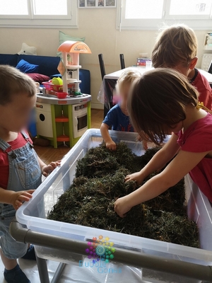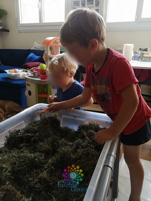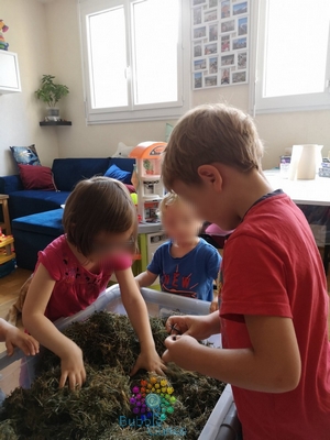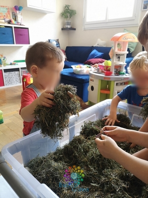 J’ai été agréablement surprise, les loulous ont joué à fond le jeu : aucune peur en manipulant l’herbe, aucune crainte en sentant les insectes sous ces doigts. ça vraiment été un moment très agréable à partager avec eux.