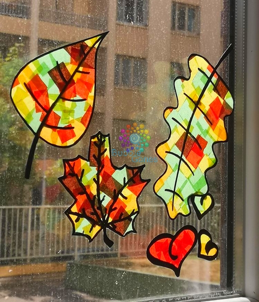 Une fois les feuilles découper, je repasse sur les contours en noir. Pour ces attrapes-soleil, j’aime les mettre sur les fenêtres et aussi les utiliser sur la table lumineuse. Car comme c’est plastifié, ça craint rien pour les bébés.
