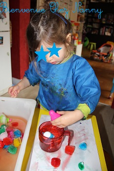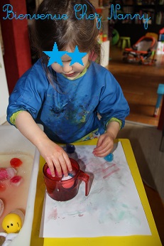 On découvre aussi une nouvelle activité artistique : peindre avec des glaçons :