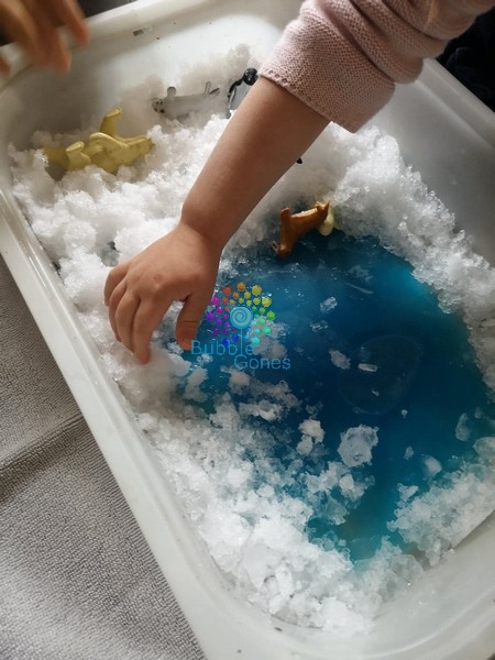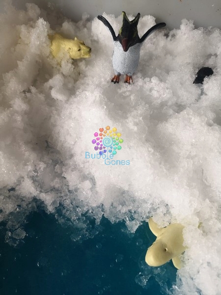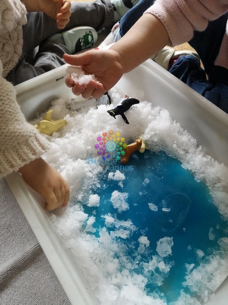 Vous en pensez quoi de ce premier bac sensoriel sur le thème de la banquise ? Les filles ont adoré.