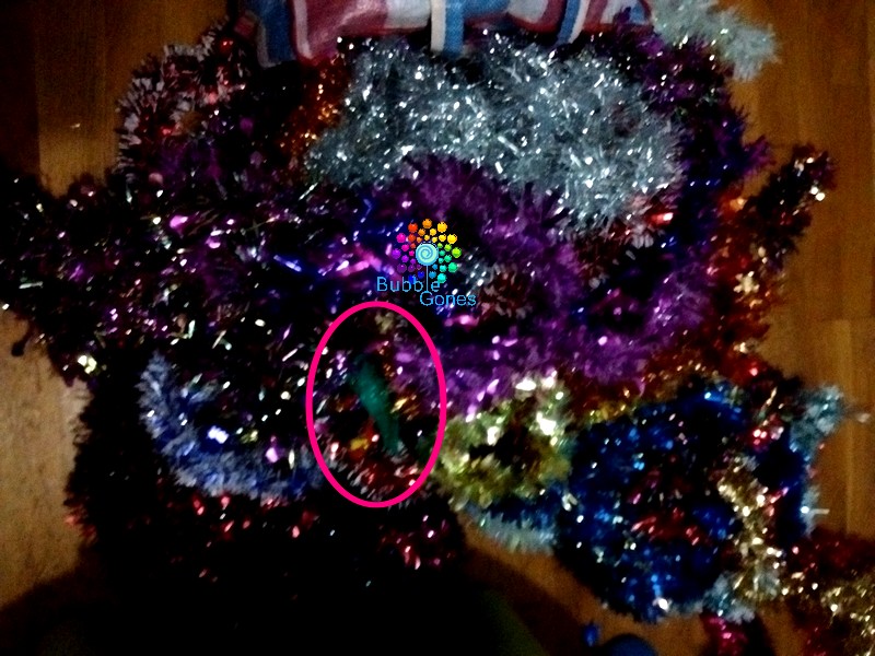 Non mais alors là, heureusement que c’est le dernier jour !!! Pirouette et Farfelu ont touché au sapin !! La seule chose interdite, ils ont commencé à le démonter. Heureusement on a eu le temps de réinstaller les boules avant sa tournée.