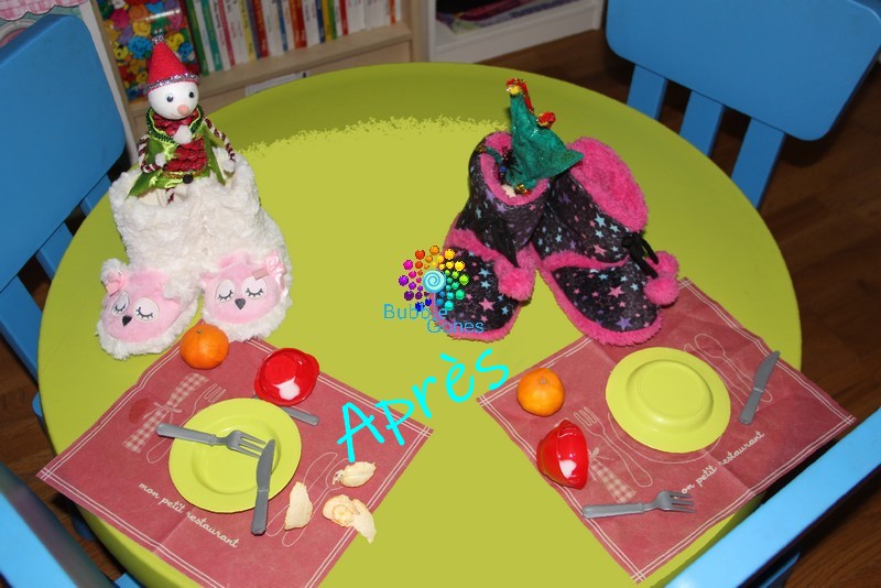 ça y est Farfelu et Pirouette sont arrivées enfin à la maison ! Ils ont amené le froid avec eux donc ils ont sorti les gros chaussons des filles ! Les filles ont adoré !