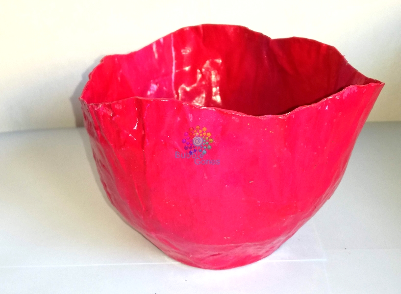 Pour créer ce bol, c’est le même principe que pour une pinata. Il suffit de réaliser une création à base de papier maché. L’idéal pour ce genre de création, c’est d’utiliser une colle maison à base de farine. Elle se réalise en quelques minutes : découvrez toute la recette en image par ICI. Voici tous ce dont vous aurez besoin pour réaliser le bol :
