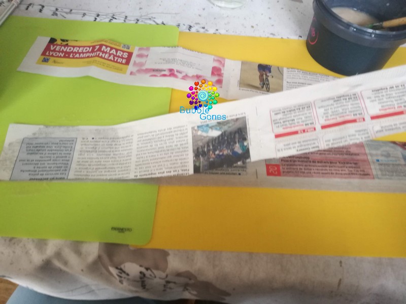 Pour l’anse, j’ai collé entre elles plusieurs bandes de journal.