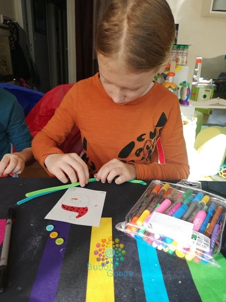 La colle sèche en 2/3 minutes. J’ai collé la tête du bonhomme de neige avec une pastille.
