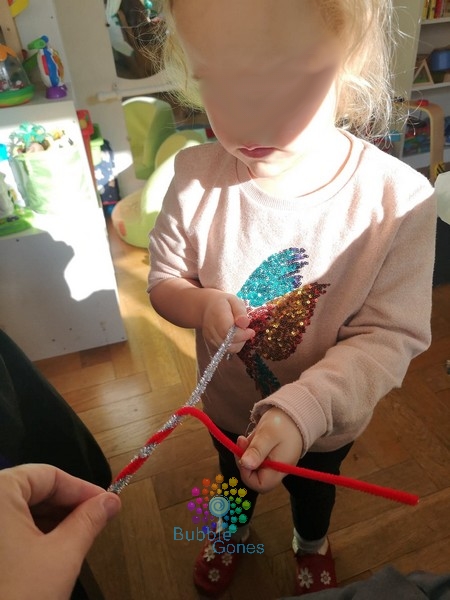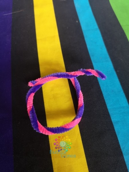 J’ai choisi deux cure pipes colorés et je les ai torsadé ensemble pour créer l’écharpe.