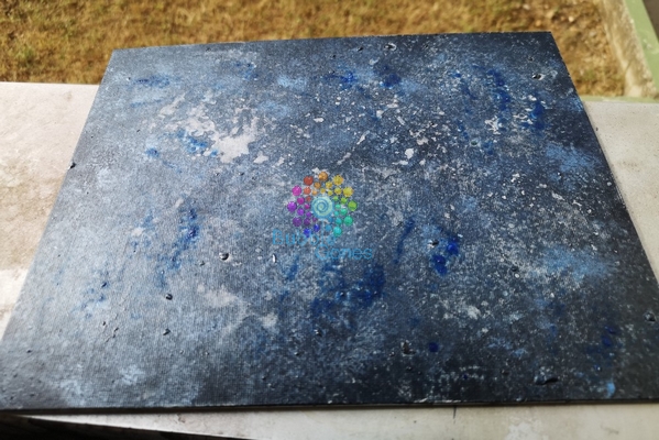 Pour L et l’effet cosmique, j’ai mélangé différentes couleurs sur le tampon : noir, bleu et argent.