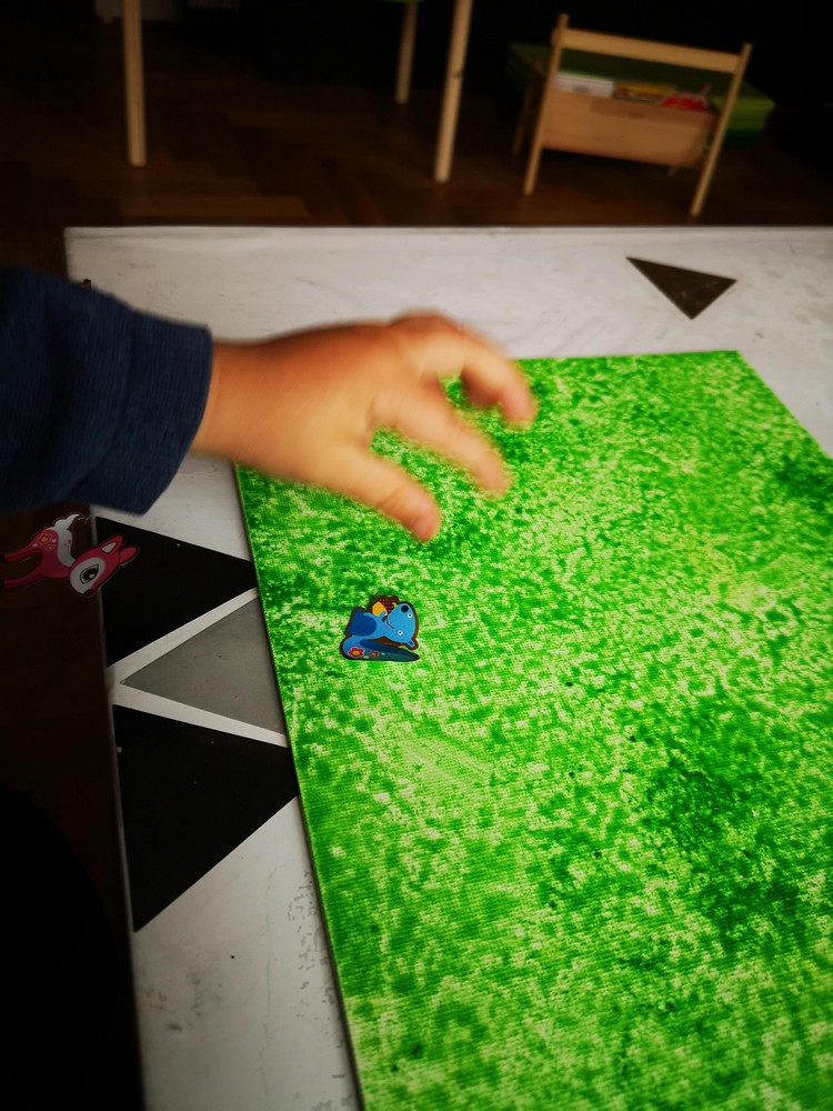 Une fois que celle-ci est sèche, il a choisi les animaux qu’ils souhaitaient coller sur son tableau.