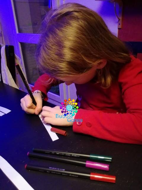 Les filles ont choisi les couleurs de feutres qu’elles voulaient. J’ai sorti ma grosse boite de feutres Edding