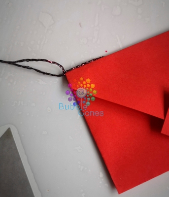 Pour les suspendre, j’ai inséré un fil de laine brillant sous le haut de l’enveloppe :