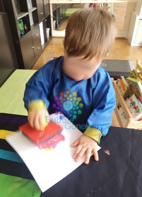 Chaque enfant a choisi sa couleur pour son lapin. Ils étaient entièrement libres, pourquoi se limiter à blanc, marron et noir ? Des lapins aux milles couleurs c’est quand même mieux, non ? Du coup, on va avoir du bleu, du jaune, du rose, du rouge…