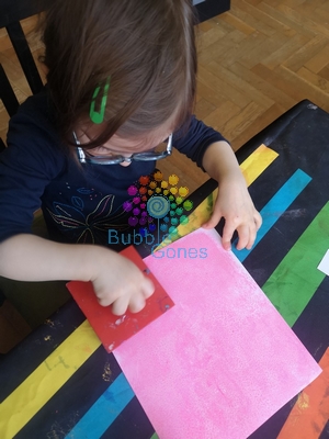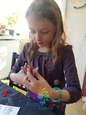 Une fois la peinture sèche, j’ai repassé le modèle avec un feutre noir en m’aidant de la fenêtre puis je l’ai découpé : mes filles ont reproduit le leur.