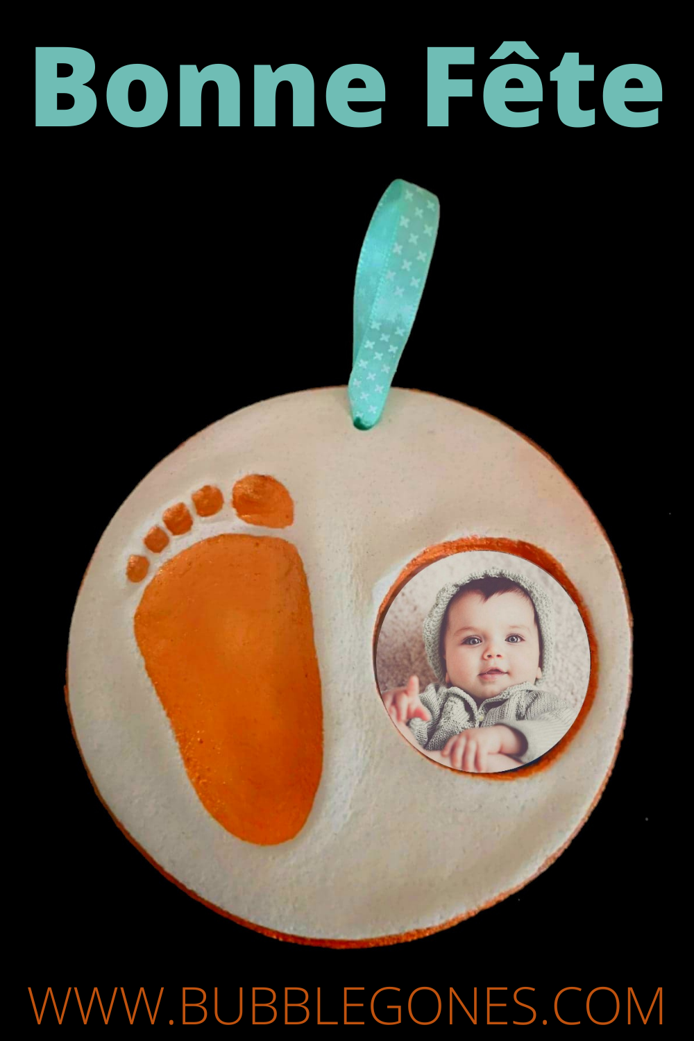 Une fois choisi, je rajoute un joli ruban comme cela, sa maman pourra suspendre l’empreinte.