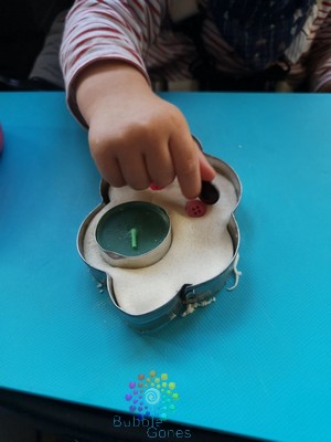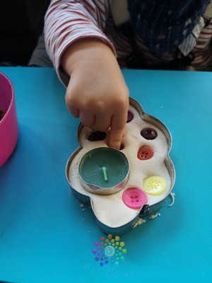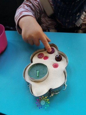 J’ai enfoncé ma bougie sur un côté, en laissant l’emporte pièce. J’ai proposé cette activité en solo aux garçons, un moment agréable en tête à tête avec moi.