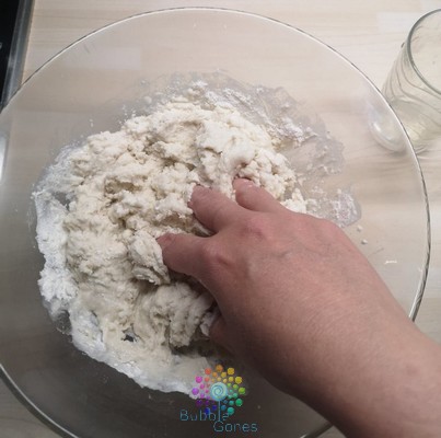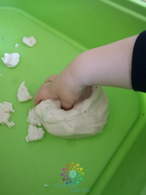 La première étape de ce tuto est de laisser les garçons découvrir la texture de la pâte.