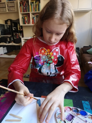 J’ai collé des morceaux de scotch sur le grand batonnet pour délimiter les couleurs.