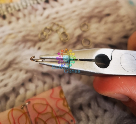 Puis pour fermer le bracelet j’ai rajouté quelques anneaux ensemble pour faire comme une petite chaîne d’un côté. Puis j’ai rajouté le fermoir sur l’autre côté du bracelet.