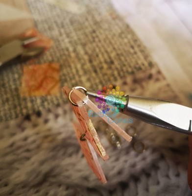 Pour les boucles d’oreilles, j’ai juste ouvert l’anneau de la boucle et inséré le carré.