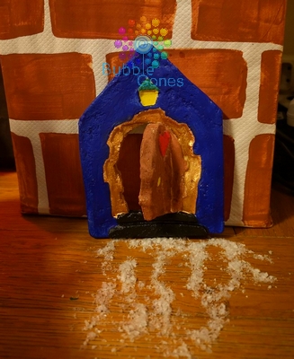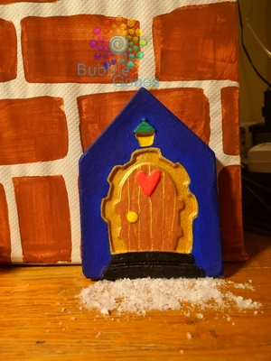 Chloé l’a réalisé avec de la pâte à sel. Une fois qu’elle était à l’école, j’ai réalisé cette même porte en découpant le côté de la porte comme si elle était ouverte. Je l’ai laissé sécher dehors en la laissant ouverte. Par contre, le mois de novembre a été un peu humide, du coup cette porte est un peu déformée. Mais pas grave, les lutins l’auront abimé en rentrant.