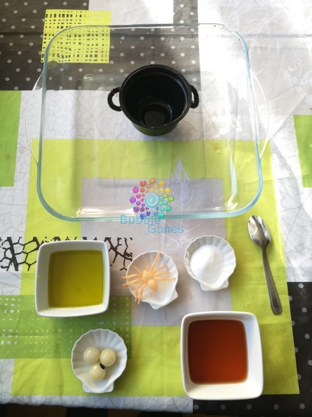 - bave de sorcière empoisonnée : vinaigre coloré en vert