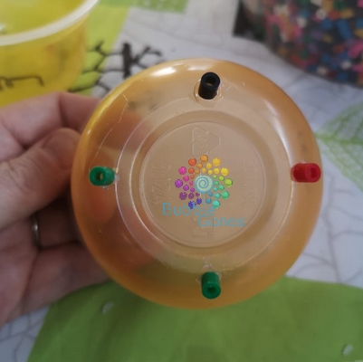 Je les ai d’abord nettoyé (je l’ai fait à la main, j’avais peur que ça fond au lave-vaisselle). J’ai collé sur le fond 4 perles hama avec de la colle liquide pour réaliser les pieds du chaudron.