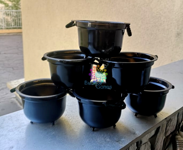 Je les ai collé sur le côté des pots en dessous de la collerette faisant ainsi les anses du chaudron. Voici mes petits chaudrons presque prêts :