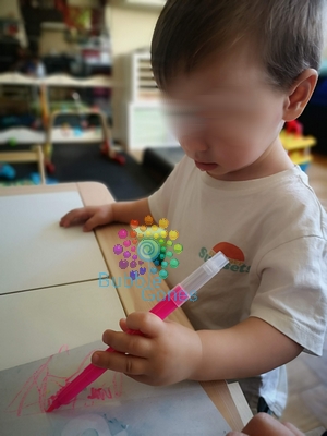 Les garçons ont choisi deux couleurs de feutre et ont coloré à l’intérieur des lettres.