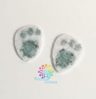 Les pattes ont été réalisé dans de la feutrine blanche : j’ai dessiné les coussinets avec un feutre. Puis je les ai collé sous le pompon blanc.