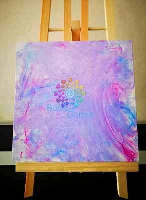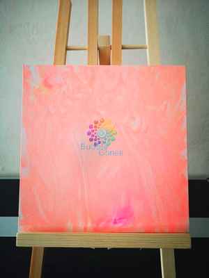 J’ai déposé des filets de peintures sur toute la toile : j’ai mis de la peinture blanche car je voulais un tableau pastel :