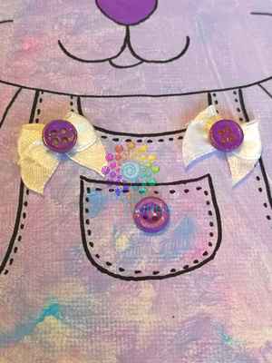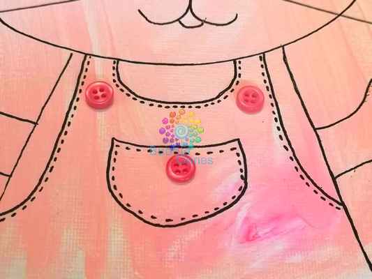 Puis j’ai dessiné un lapin, enfin plutôt une lapine pour transformer cette toile en un tableau de Pâques :