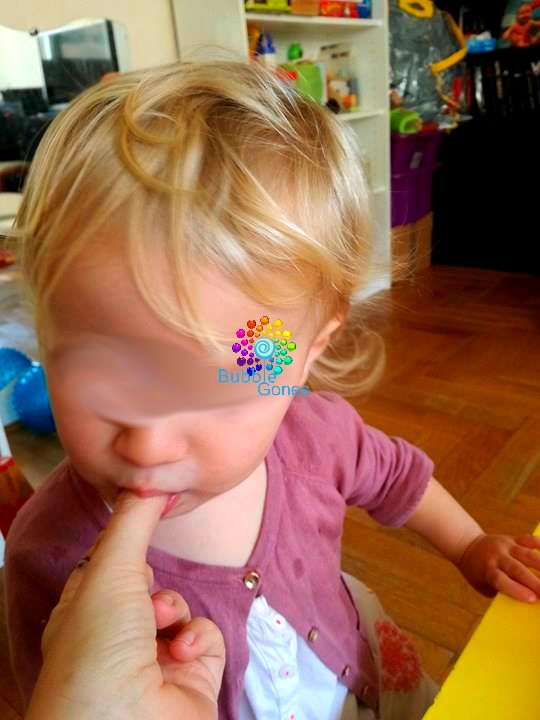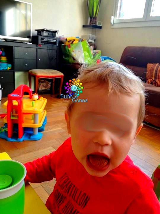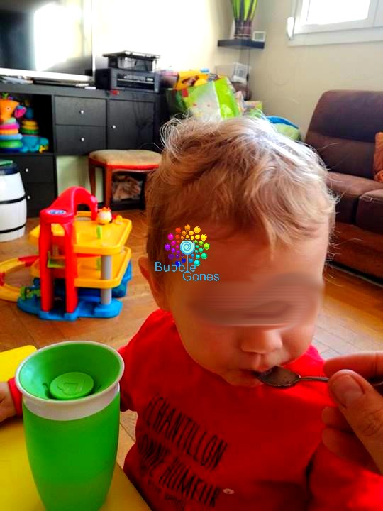 On passe ensuite au jus de citron, pas du tout surpris !! J’enchaîne avec une autre texture plus fondante : la moutarde ! Jeanne l’a gobe sans problème. Hugo me dit “Nanny pique, pique !!!”