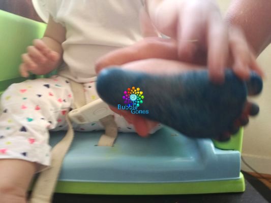 Comme ces deux demoiselles sont un peu jeunes pour les loisirs créatifs, “j’emprunte” leurs petits petons pour réaliser des empreintes. Pour l’empreinte de septembre, j’avais envie de créer un poulpe.