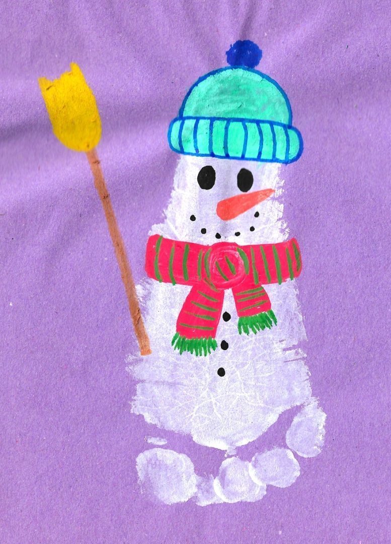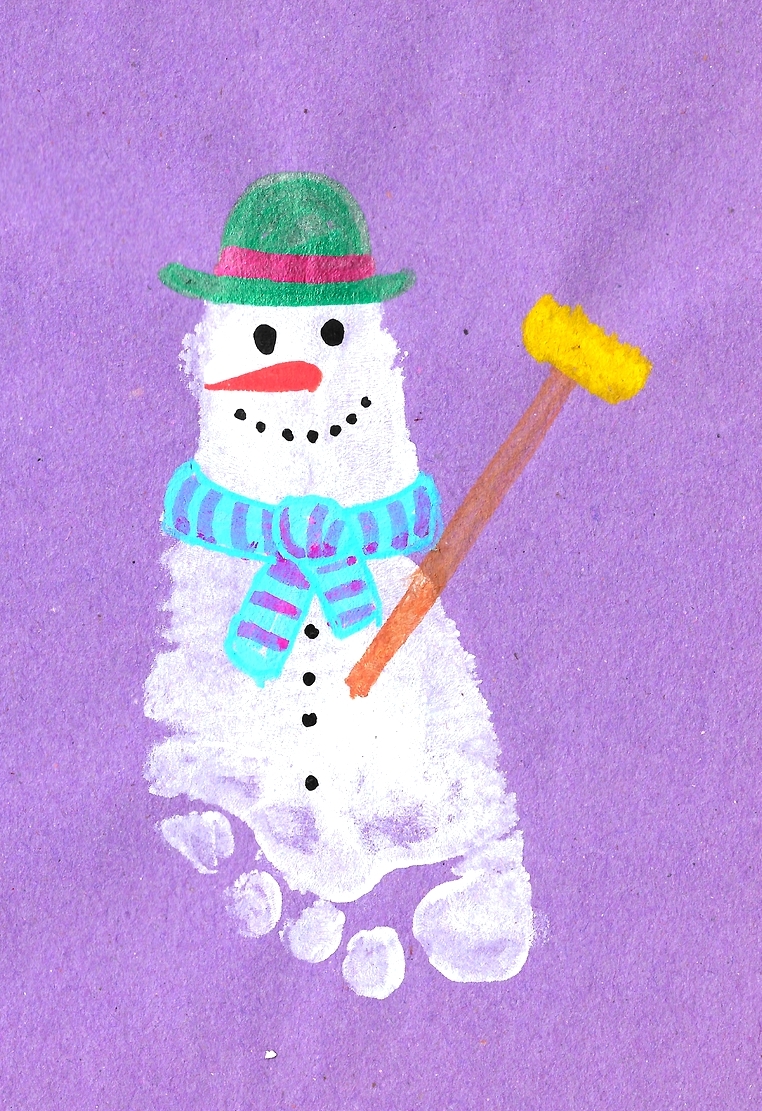 Chaque mois, j‘illustre la page de garde du carnet de liaison avec une empreinte de pied customisée. La on est en plein hiver et ça caille bien alors hip on reste dans le thème en réalisant….