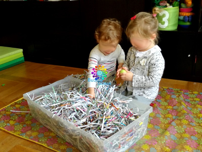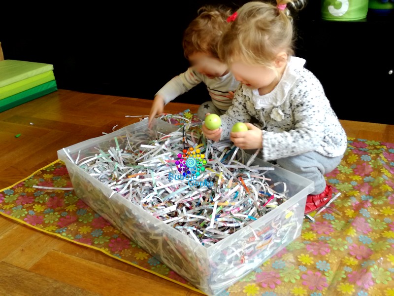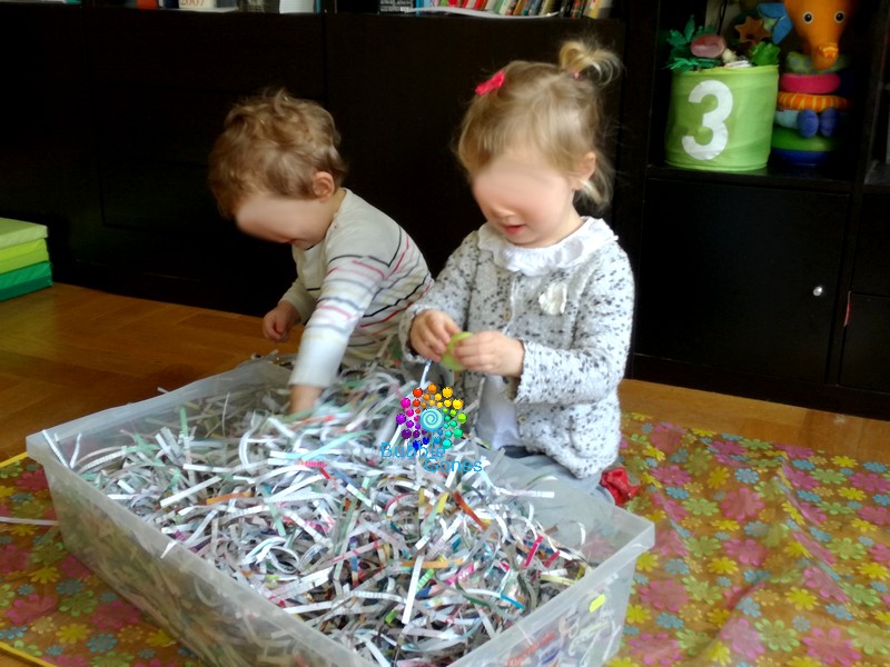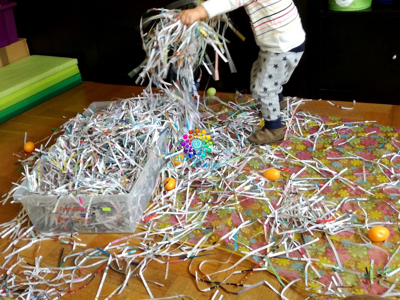 J’adore proposer des expériences sensorielle aux enfants et eux me le rendent bien ! Dans le tuto “Carte de Pâques“, j’avais utilisé une déchiqueteuse à documents. Et j’ai eu une idée sensorielle !!!