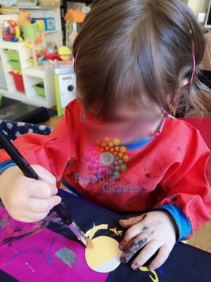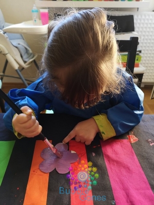 Du coup une fois que miss L et mademoiselle A ont choisi leurs couleurs pour leurs fleurs, elles les peignent avec application.