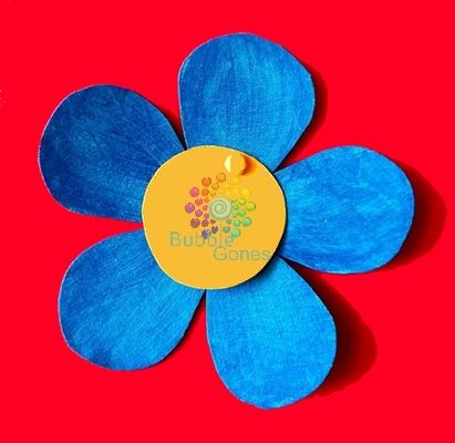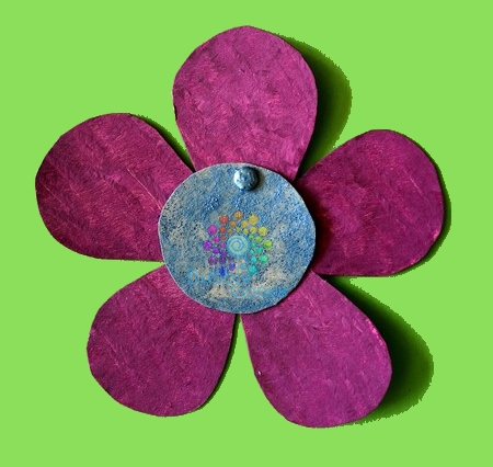 J’ai gardé les boîtes de céréales : c’est un carton à la fois souple et solide que l’on peut peindre sans que celui-ci se déforme. J’ai découpé dedans la forme des pétales et un rond pour le coeur de la fleur.