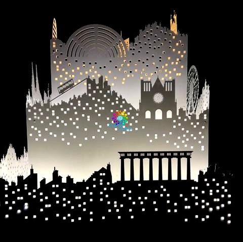 Les lumignons du cœur mettent en avant chaque année une association pour récolter des dons grâce à la vente de lumignons. Cette vente permet de réaliser une magnifique fresque. D’habitude cet événement a lieu sur la place Bellecour, mais pour cette édition 2017, il a lieu dans le théâtre antique. L’association est celle de Laurette Fugain avec une belle fresque qui malheureusement n’a pas été tourné du bon côté pour qu’elle soit le mieux mise en valeur :