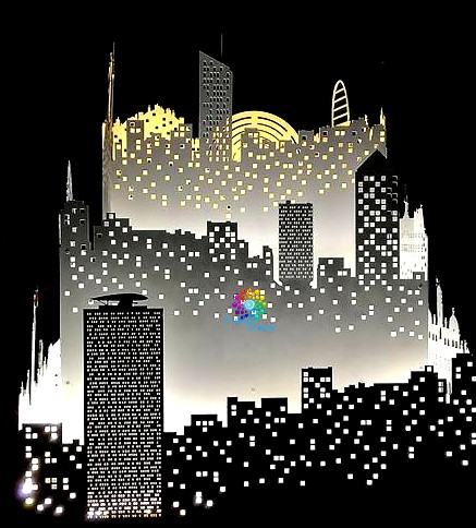 De belles maquettes lumineuses superbement mises en valeur au dessus des bassins