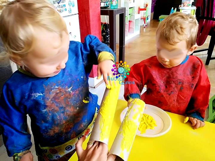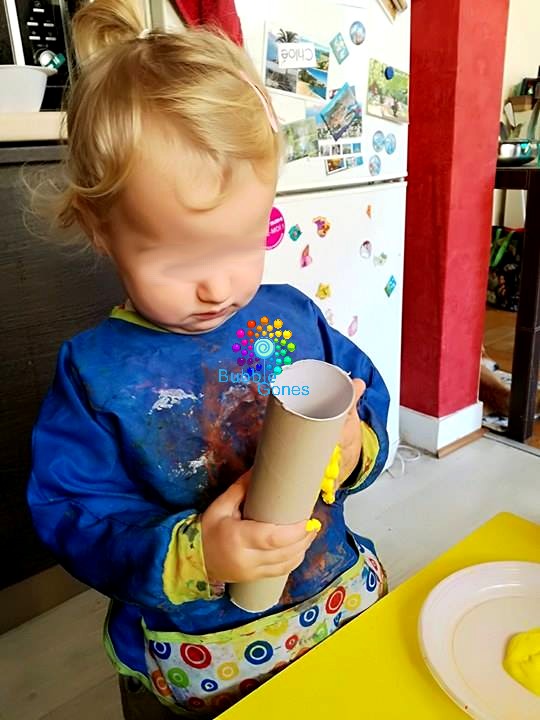 oulàlà heureusement ils ont un super tablier ! activité encore intéressante, zut j’ai jeté un rouleau vide… alors mamie… ah tête en l’air! à penser pour une autre fois.