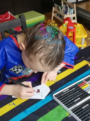 J’ai imprimé un gabarit d’esquimau trouvé sur internet dont vous pouvez retrouver le modèle par ICI. Puis les filles ont colorié aux feutres leur esquimau.
